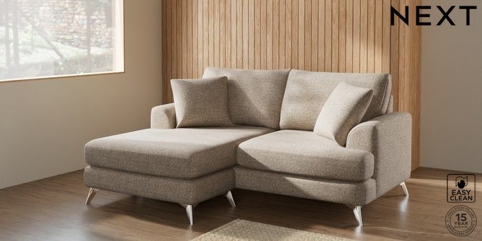 7.2.5 Buy Parker Compact Sofa Chaise - Universal Chunky Boucle Easy Clean Mid Natural High Metal - Chrome from the Next UK online shop Click here to use our accessible website