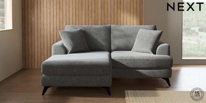 7.2.10 Buy Parker Compact Sofa Chaise - Universal Chunky Chenille Dark Grey High Metal - Black from the Next UK online shop Click here to use our accessible website