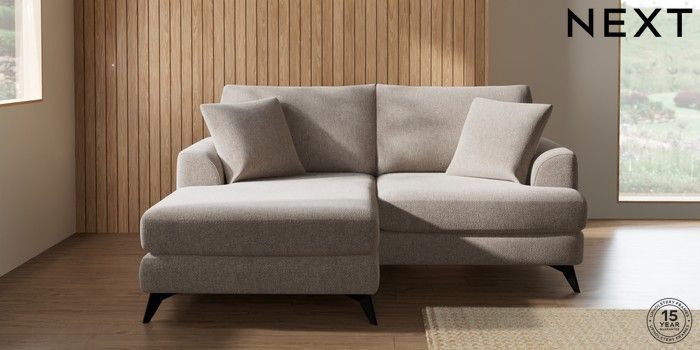 7.2.10 Buy Parker Compact Sofa Chaise - Universal Chunky Chenille Light Dove High Metal - Black from the Next UK online shop Click here to use our accessible website