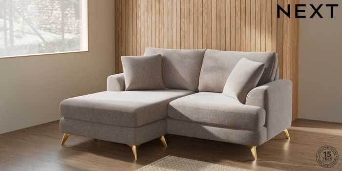 7.2.5 Buy Parker Compact Sofa Chaise - Universal Chunky Chenille Light Dove High Metal - Brass from the Next UK online shop Click here to use our accessible website