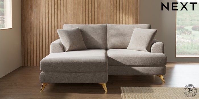 7.2.10 Buy Parker Compact Sofa Chaise - Universal Chunky Chenille Light Dove High Metal - Brass from the Next UK online shop Click here to use our accessible website