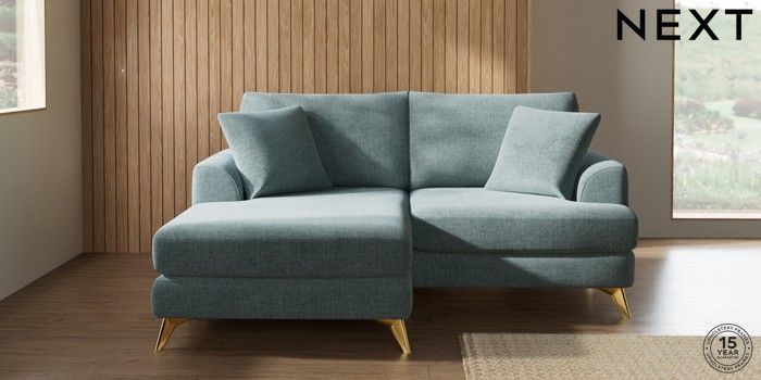 7.2.10 Buy Parker Compact Sofa Chaise - Universal Chunky Chenille Light Teal Green High Metal - Brass from the Next UK online shop Click here to use our accessible website