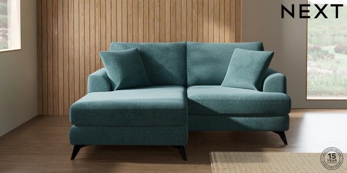 7.2.10 Buy Parker Compact Sofa Chaise - Universal Chunky Chenille Mid Teal Green High Metal - Black from the Next UK online shop Click here to use our accessible website