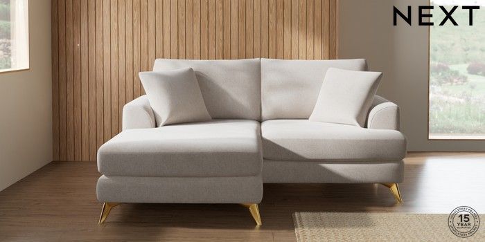 7.2.10 Buy Parker Compact Sofa Chaise - Universal Chunky Chenille Oyster High Metal - Brass from the Next UK online shop Click here to use our accessible website