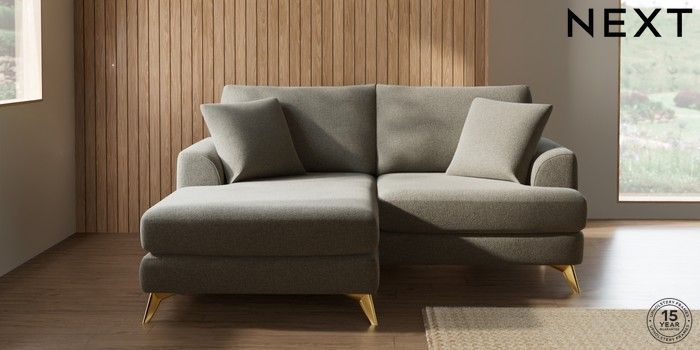 7.2.10 Buy Parker Compact Sofa Chaise - Universal Chunky Marl Light Olive Green High Metal - Brass from the Next UK online shop Click here to use our accessible website