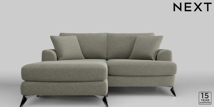 6.12.1 Buy Parker Compact Sofa Chaise - Universal Chunky Marl Light Olive Green High Metal - Chrome from the Next UK online shop Click here to use our accessible website