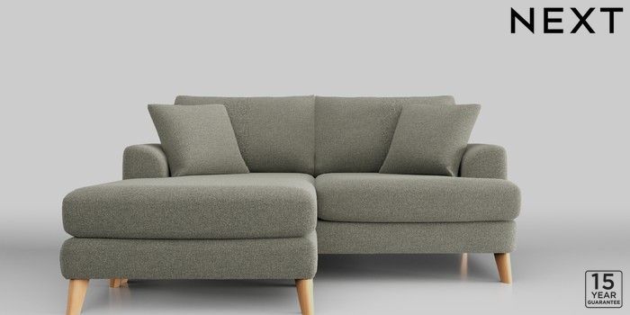 6.12.1 Buy Parker Compact Sofa Chaise - Universal Chunky Marl Light Olive Green Low Retro Tapered - Light from the Next UK online shop Click here to use our accessible website