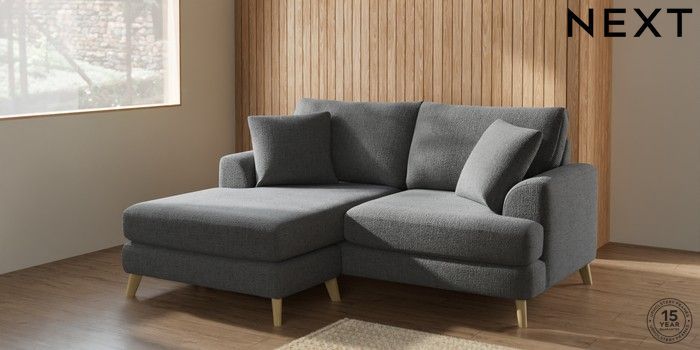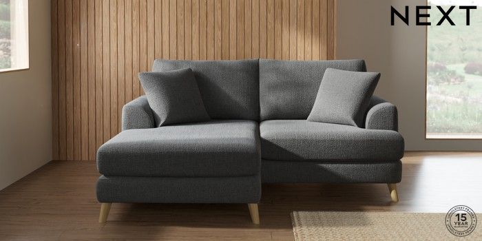 7.2.5 Buy Parker Compact Sofa Chaise - Universal Chunky Texture Dark Grey Low Retro Tapered - Light from the Next UK online shop Click here to use our accessible website