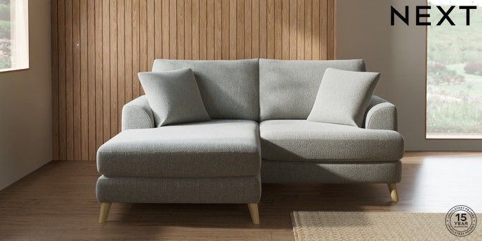 7.2.5 Buy Parker Compact Sofa Chaise - Universal Chunky Texture Dove Low Retro Tapered - Light from the Next UK online shop Click here to use our accessible website