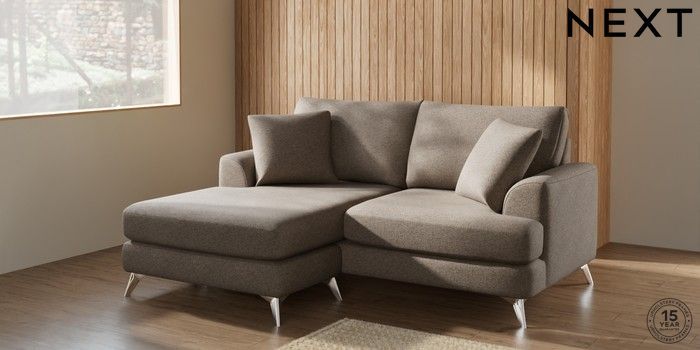 7.2.5 Buy Parker Compact Sofa Chaise - Universal Chunky Weave Dark Natural High Metal - Chrome from the Next UK online shop Click here to use our accessible website
