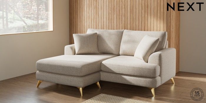 7.2.5 Buy Parker Compact Sofa Chaise - Universal Chunky Weave Mid Natural High Metal - Brass from the Next UK online shop Click here to use our accessible website