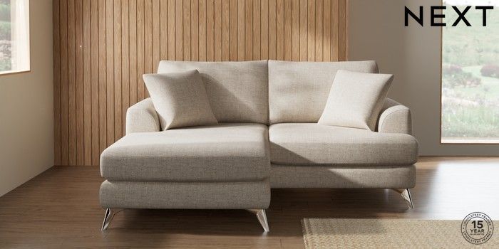 7.2.10 Buy Parker Compact Sofa Chaise - Universal Chunky Weave Mid Natural High Metal - Chrome from the Next UK online shop Click here to use our accessible website