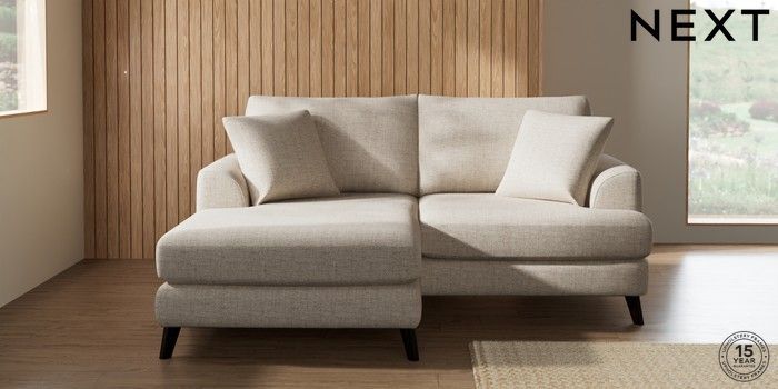 7.2.10 Buy Parker Compact Sofa Chaise - Universal Chunky Weave Mid Natural Low Retro Tapered - Dark from the Next UK online shop Click here to use our accessible website
