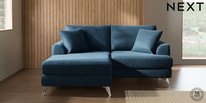 7.2.10 Buy Parker Compact Sofa Chaise - Universal Cotswold Chenille Dark Blue High Metal - Chrome from the Next UK online shop Click here to use our accessible website