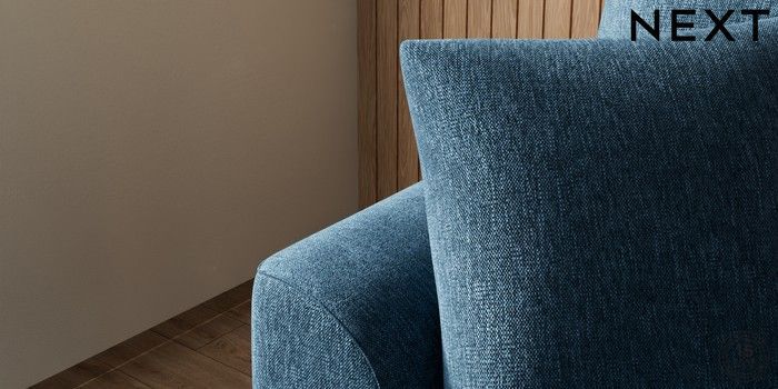 7.2.10 Buy Parker Compact Sofa Chaise - Universal Cotswold Chenille Dark Blue Low Retro Tapered - Light from the Next UK online shop Click here to use our accessible website