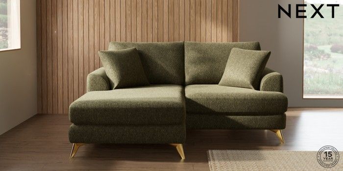 7.2.10 Buy Parker Compact Sofa Chaise - Universal Cotswold Chenille Dark Green High Metal - Brass from the Next UK online shop Click here to use our accessible website