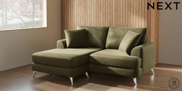 7.2.5 Buy Parker Compact Sofa Chaise - Universal Cotswold Chenille Dark Green High Metal - Chrome from the Next UK online shop Click here to use our accessible website