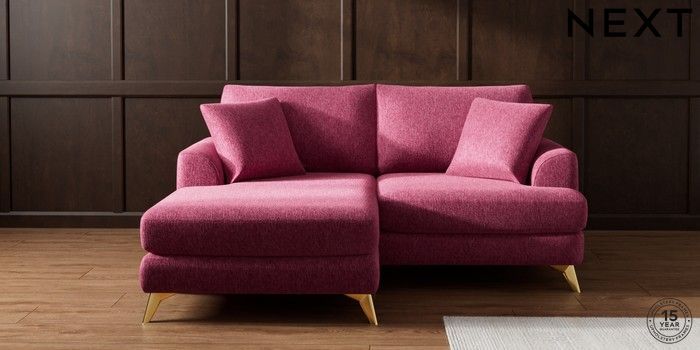 7.2.10 Buy Parker Compact Sofa Chaise - Universal Cotswold Chenille Dark Raspberry Pink High Metal - Brass from the Next UK online shop Click here to use our accessible website
