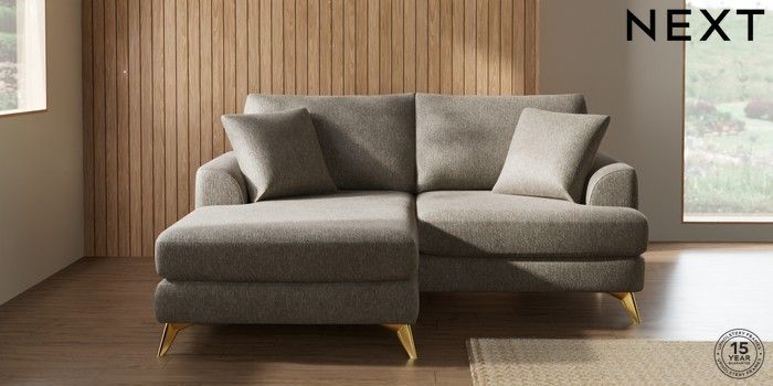 7.0.3 Buy Parker Compact Sofa Chaise - Universal Cotswold Chenille Mid Mink Brown High Metal - Brass from the Next UK online shop Click here to use our accessible website