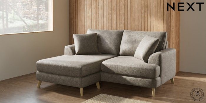 7.0.3 Buy Parker Compact Sofa Chaise - Universal Cotswold Chenille Mid Mink Brown Low Retro Tapered - Light from the Next UK online shop Click here to use our accessible website