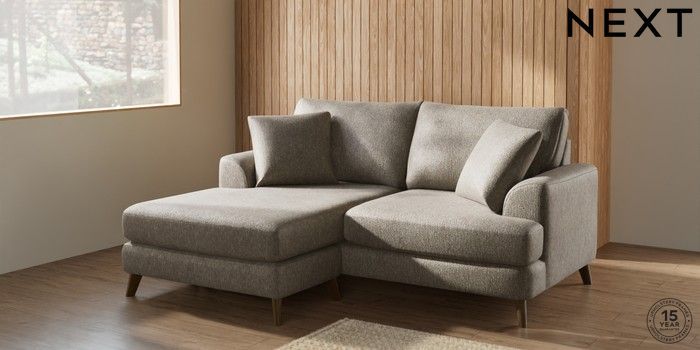 7.0.3 Buy Parker Compact Sofa Chaise - Universal Cotswold Chenille Mid Mink Brown Low Retro Tapered - Mid from the Next UK online shop Click here to use our accessible website