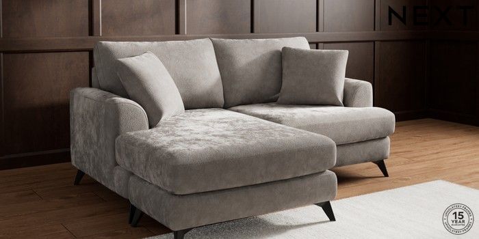 7.3.1 Buy Parker Compact Sofa Chaise - Universal Distressed Velour French Grey High Metal - Black from the Next UK online shop Click here to use our accessible website