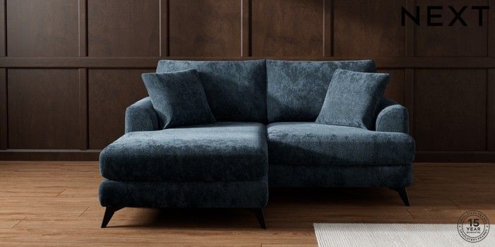 7.2.10 Buy Parker Compact Sofa Chaise - Universal Distressed Velour Midnight Blue High Metal - Black from the Next UK online shop Click here to use our accessible website