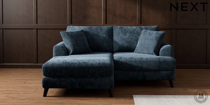7.2.10 Buy Parker Compact Sofa Chaise - Universal Distressed Velour Midnight Blue Low Retro Tapered - Dark from the Next UK online shop Click here to use our accessible website