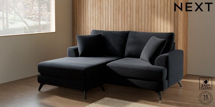 7.2.5 Buy Parker Compact Sofa Chaise - Universal Fine Chenille Easy Clean Black High Metal - Black from the Next UK online shop Click here to use our accessible website