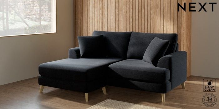 7.2.4 Buy Parker Compact Sofa Chaise - Universal Fine Chenille Easy Clean Black Low Retro Tapered - Light from the Next UK online shop Click here to use our accessible website