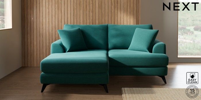 7.2.10 Buy Parker Compact Sofa Chaise - Universal Fine Chenille Easy Clean Dark Juniper Green High Metal - Black from the Next UK online shop Click here to use our accessible website