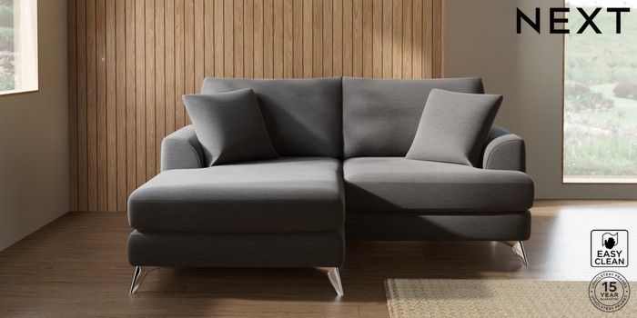 7.2.10 Buy Parker Compact Sofa Chaise - Universal Fine Chenille Easy Clean Dark Smoke Grey High Metal - Chrome from the Next UK online shop Click here to use our accessible website