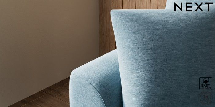 7.2.10 Buy Parker Compact Sofa Chaise - Universal Fine Chenille Easy Clean Mid Blue High Metal - Brass from the Next UK online shop Click here to use our accessible website
