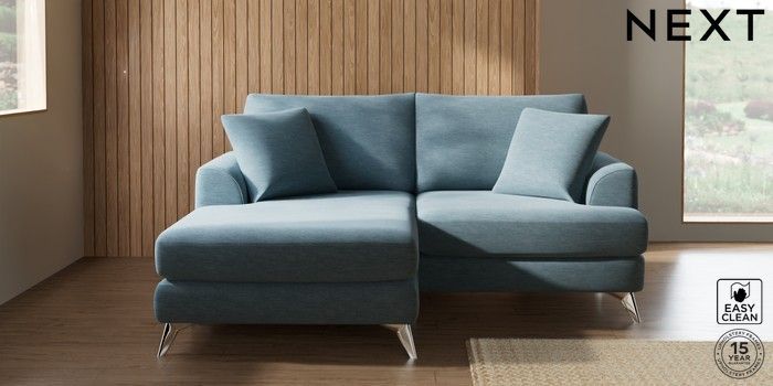 7.2.10 Buy Parker Compact Sofa Chaise - Universal Fine Chenille Easy Clean Mid Blue High Metal - Chrome from the Next UK online shop Click here to use our accessible website