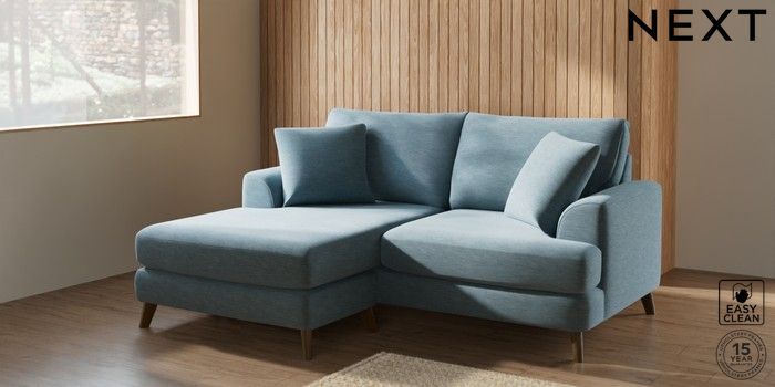 7.2.5 Buy Parker Compact Sofa Chaise - Universal Fine Chenille Easy Clean Mid Blue Low Retro Tapered - Mid from the Next UK online shop Click here to use our accessible website