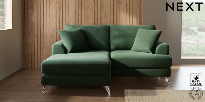 7.2.10 Buy Parker Compact Sofa Chaise - Universal Fine Chenille Easy Clean Mid Khaki Green High Metal - Chrome from the Next UK online shop Click here to use our accessible website
