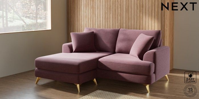7.2.5 Buy Parker Compact Sofa Chaise - Universal Fine Chenille Easy Clean Mid Mulberry Purple High Metal - Brass from the Next UK online shop Click here to use our accessible website
