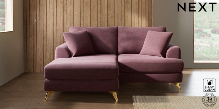 7.3.1 Buy Parker Compact Sofa Chaise - Universal Fine Chenille Easy Clean Mid Mulberry Purple High Metal - Brass from the Next UK online shop Click here to use our accessible website