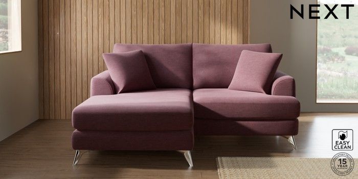 7.3.1 Buy Parker Compact Sofa Chaise - Universal Fine Chenille Easy Clean Mid Mulberry Purple High Metal - Chrome from the Next UK online shop Click here to use our accessible website
