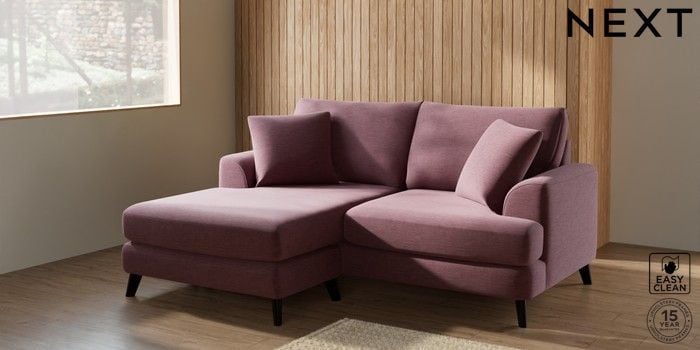 7.2.5 Buy Parker Compact Sofa Chaise - Universal Fine Chenille Easy Clean Mid Mulberry Purple Low Retro Tapered - Dark from the Next UK online shop Click here to use our accessible website