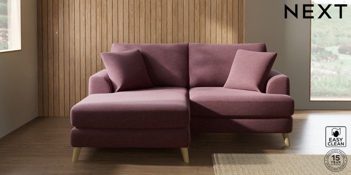 7.3.1 Buy Parker Compact Sofa Chaise - Universal Fine Chenille Easy Clean Mid Mulberry Purple Low Retro Tapered - Light from the Next UK online shop Click here to use our accessible website