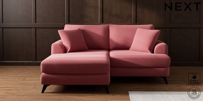 7.2.10 Buy Parker Compact Sofa Chaise - Universal Fine Chenille Easy Clean Mid Pink High Metal - Black from the Next UK online shop Click here to use our accessible website