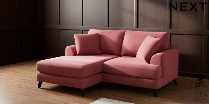 7.2.5 Buy Parker Compact Sofa Chaise - Universal Fine Chenille Easy Clean Mid Pink Low Retro Tapered - Dark from the Next UK online shop Click here to use our accessible website