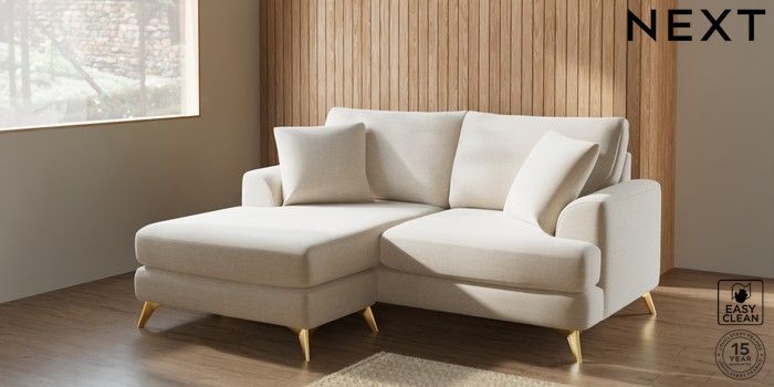 7.2.5 Buy Parker Compact Sofa Chaise - Universal Fine Chenille Easy Clean Oyster High Metal - Brass from the Next UK online shop Click here to use our accessible website