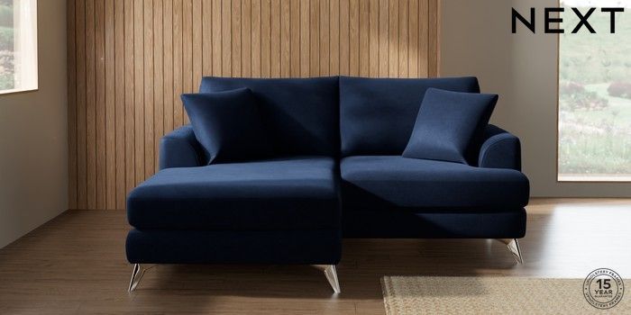 7.2.10 Buy Parker Compact Sofa Chaise - Universal Luxe Chenille Navy Blue High Metal - Chrome from the Next UK online shop Click here to use our accessible website