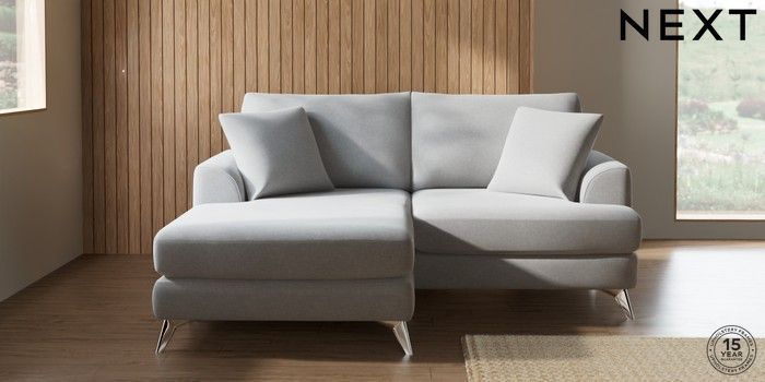 7.0.3 Buy Parker Compact Sofa Chaise - Universal Natural Mix Light Grey High Metal - Chrome from the Next UK online shop Click here to use our accessible website