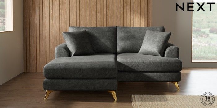 7.2.10 Buy Parker Compact Sofa Chaise - Universal Plush Chenille Dark Grey High Metal - Brass from the Next UK online shop Click here to use our accessible website