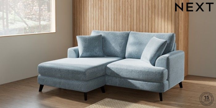 7.2.6 Buy Parker Compact Sofa Chaise - Universal Plush Chenille Light Blue Low Retro Tapered - Dark from the Next UK online shop Click here to use our accessible website