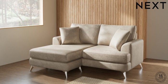 7.2.5 Buy Parker Compact Sofa Chaise - Universal Plush Chenille Light Natural High Metal - Chrome from the Next UK online shop Click here to use our accessible website
