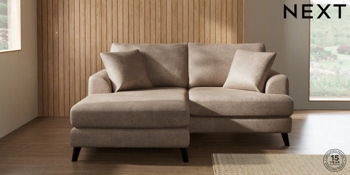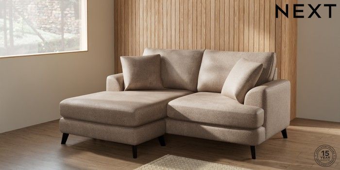 7.2.4 Buy Parker Compact Sofa Chaise - Universal Plush Chenille Mid Natural Low Retro Tapered - Dark from the Next UK online shop Click here to use our accessible website